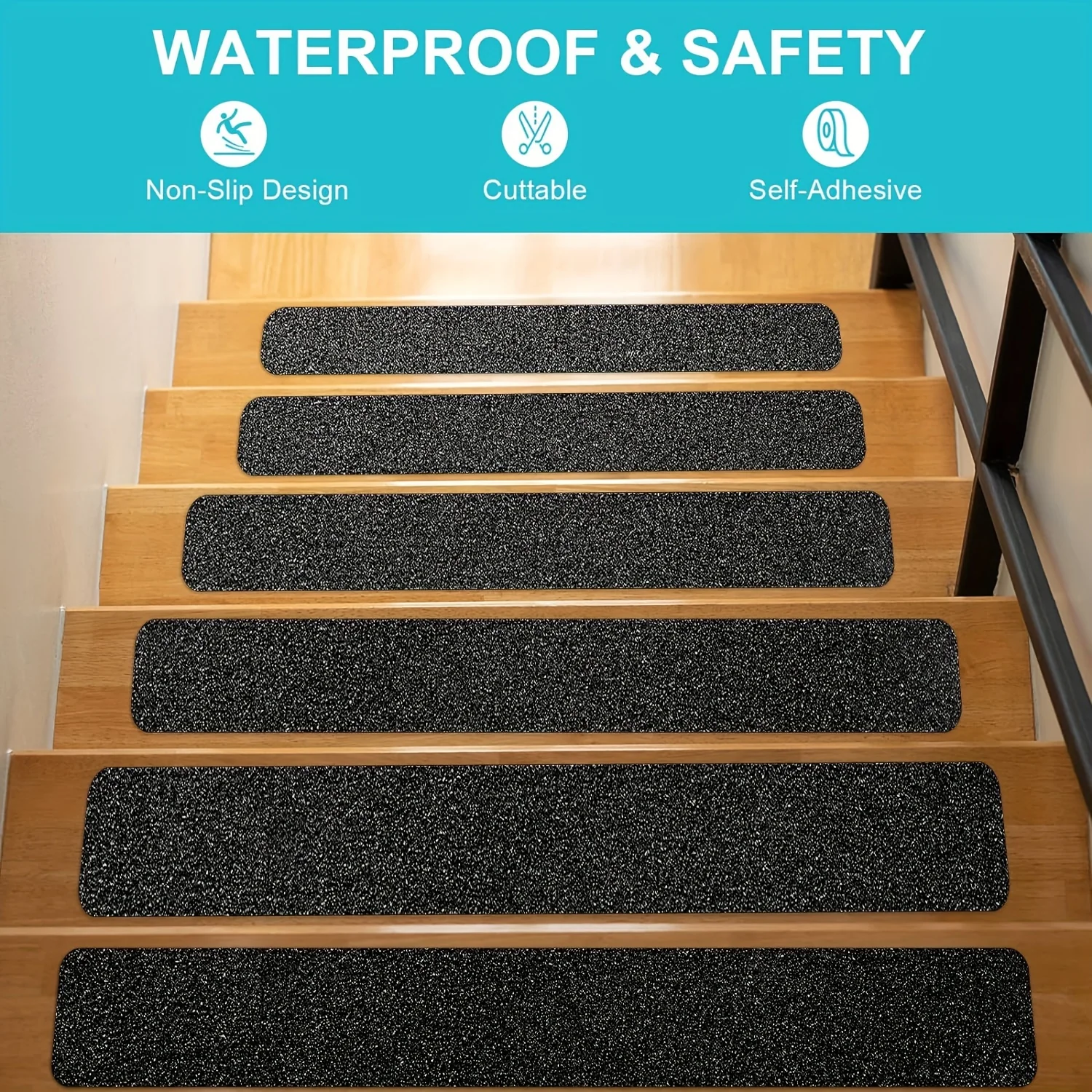 This grip tape is designed to provide traction and safety on stairs, ramps, and staircases. It is waterproof and suitable for both indoor and outdoor use.