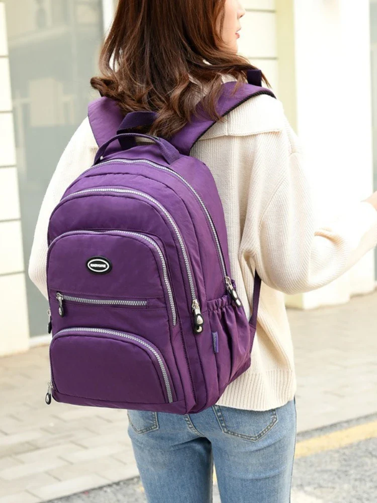 This stylish women laptop backpack is designed for school, campus, and travel. Made of durable nylon, it offers functionality and comfort for daily use.